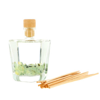 Dans d’élégants flacons diffuseurs en verre transparent, des parfums formulés à partir d’ingrédients naturels, des pierres semi-précieuses rigoureusement sélectionnées… et toute mon expérience en lithothérapie bioénergétique – l’application thérapeutique des vertus des pierres naturelles sur notre système énergétique : les chakras.